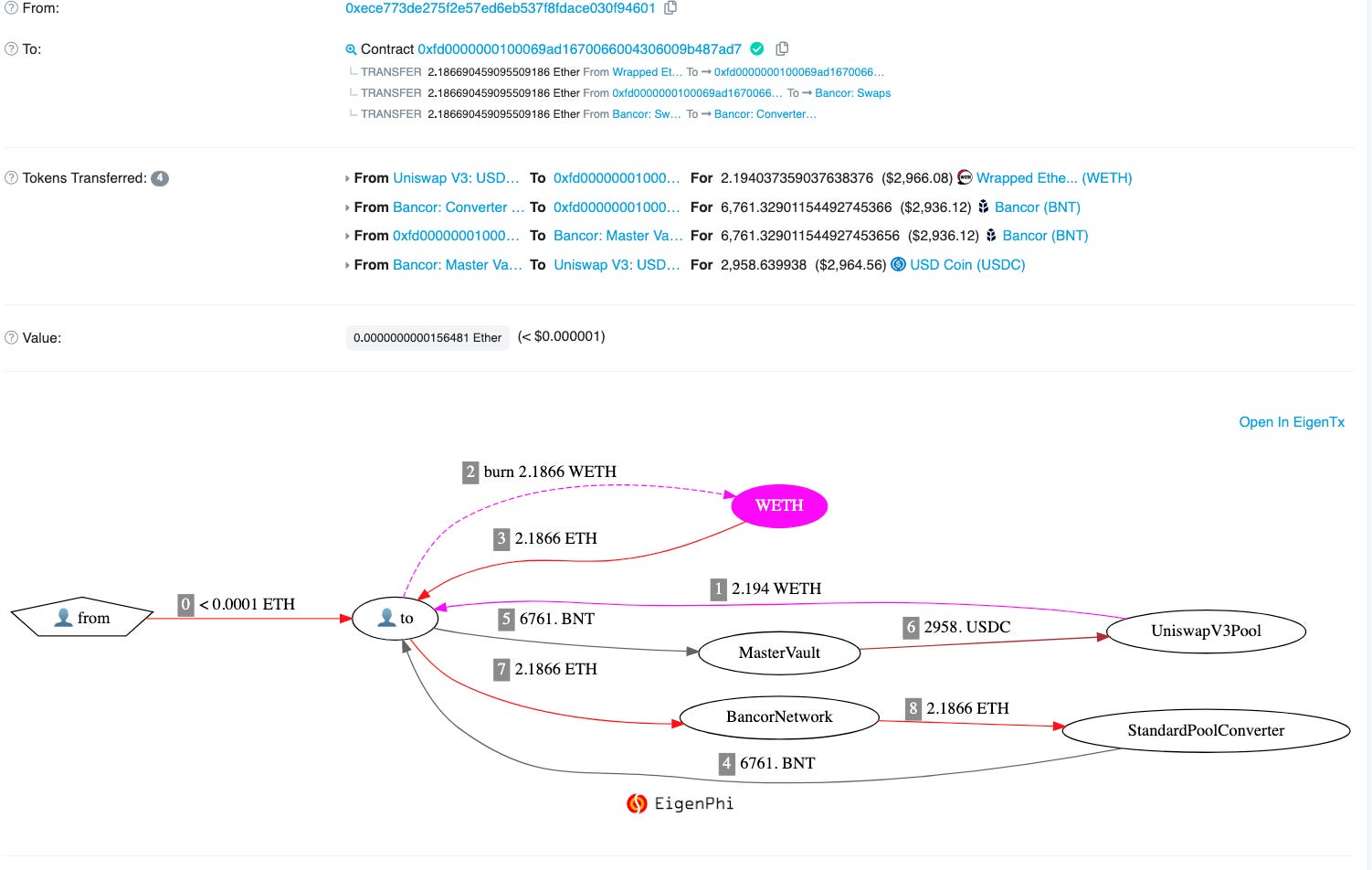 The best companion is EigenTx Chrome Extension, which can visualize the asset flows in an intuitive way like this.